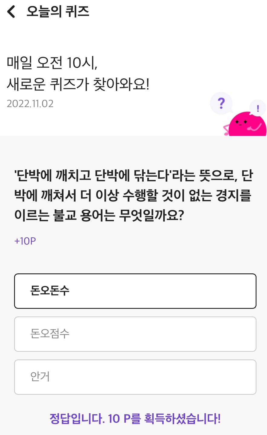 출석체크하시고나서 오늘의 퀴즈 푸셔야져?