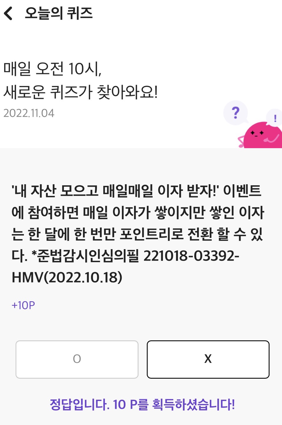 내 자산 모으고 매일매일 이자 받자! 이벤트에 참여하면 매일 이자가 쌓이지만 쌓인 이자는 한 달에 한 번만 포인트리로 전환 할 수 있다.