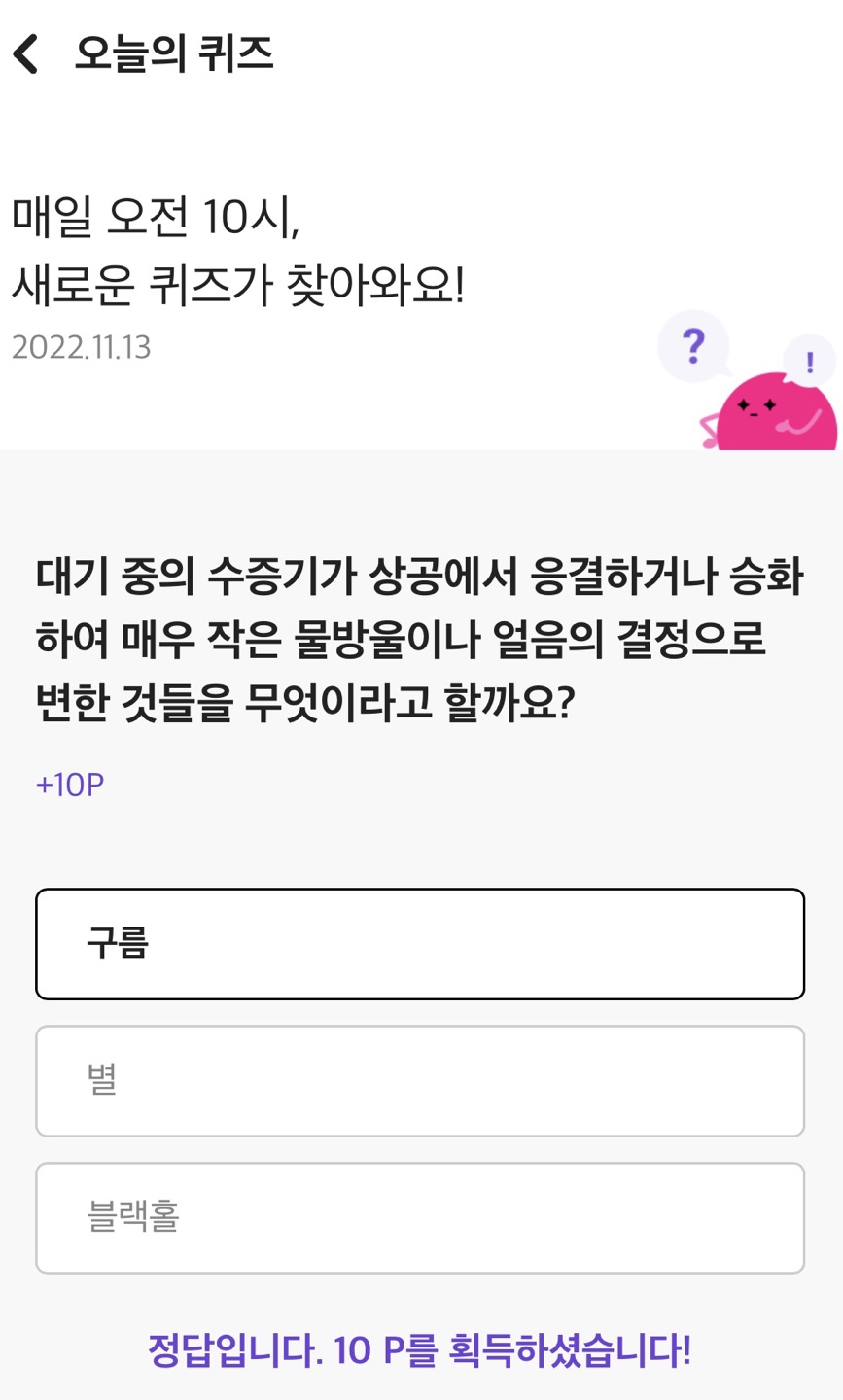 | [정보공유] 11월15일 리브메이트/캐시워크 정답 (18시30분기준) (0) | 2022.11.15 |