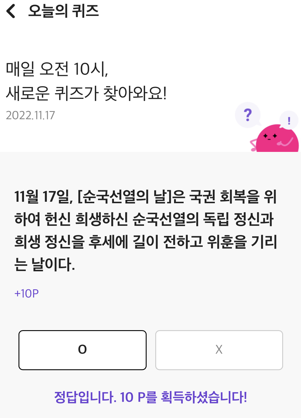 11월 17일자 19시 기준 리브메이트 오늘의 퀴즈 (O/X 퀴즈)